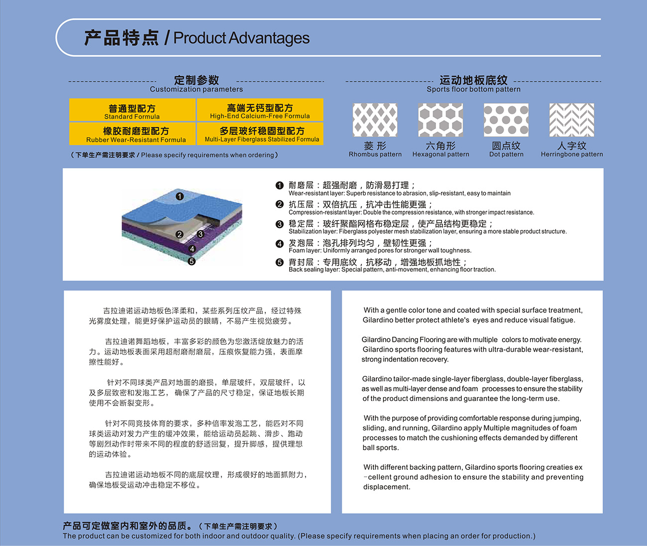 運(yùn)動(dòng)地板紋理:木紋/寶石紋/碎石紋/沙石紋/水晶砂/布紋/平板/荔枝紋/牛皮紋/定制紋理