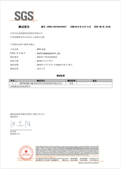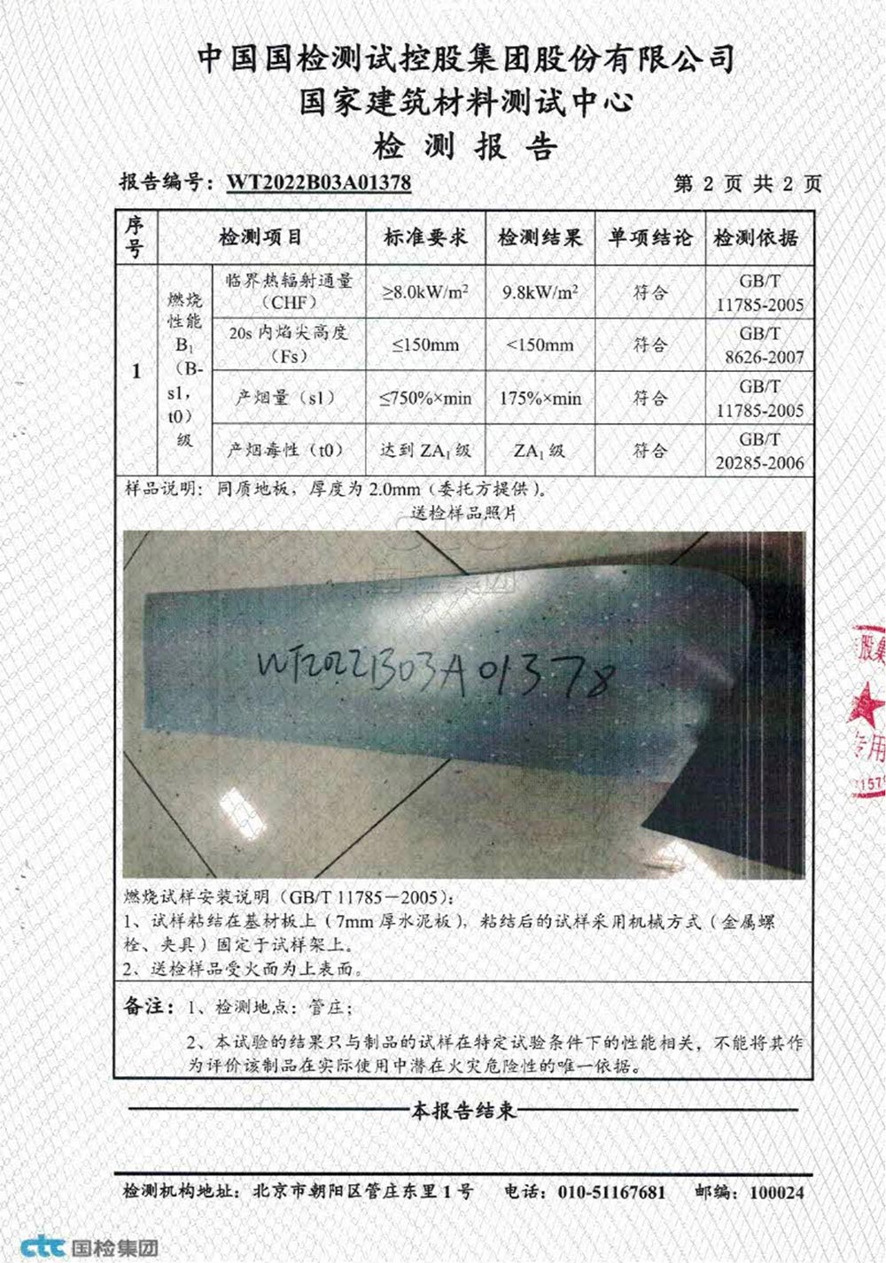 國家建筑材料測試中心防火等級檢測報(bào)告